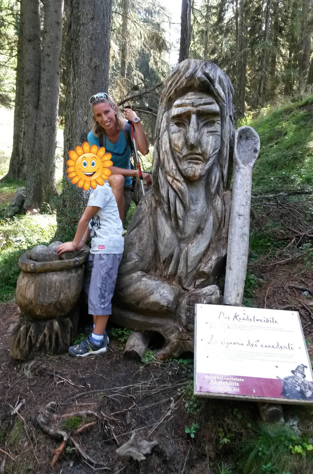 Altro impianto di risalita a Sesto e passeggiata al Monte Elmo prima del ritorno in valle. E quindi picnic in un campo assolato, giochi vari per il bimbo, parapendii, statue di legno sul sentiero, gelati con i lamponi caldi, e altre amenità.